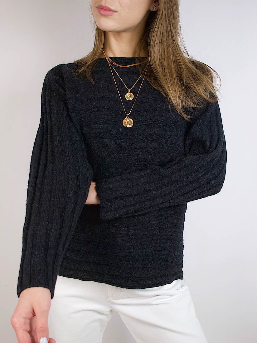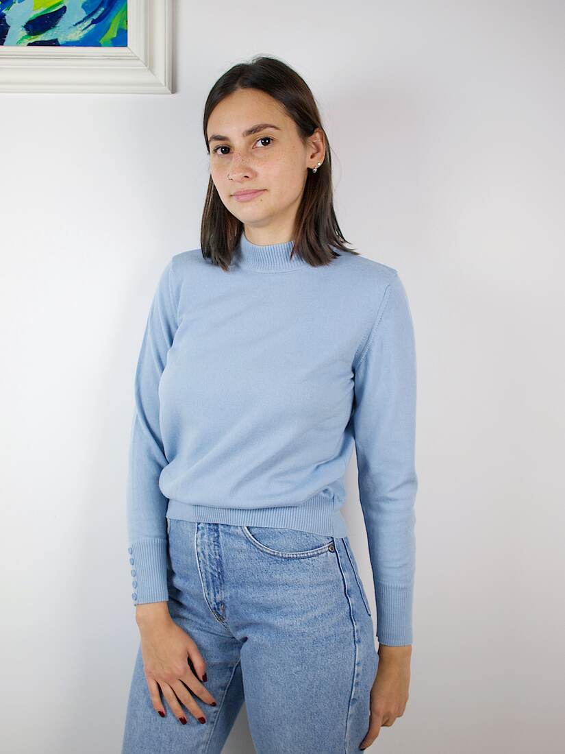 Modelka ma 165 cm wzrostu i nosi rozmiar XS-S.Szerokość w ramionach 39,5 cm