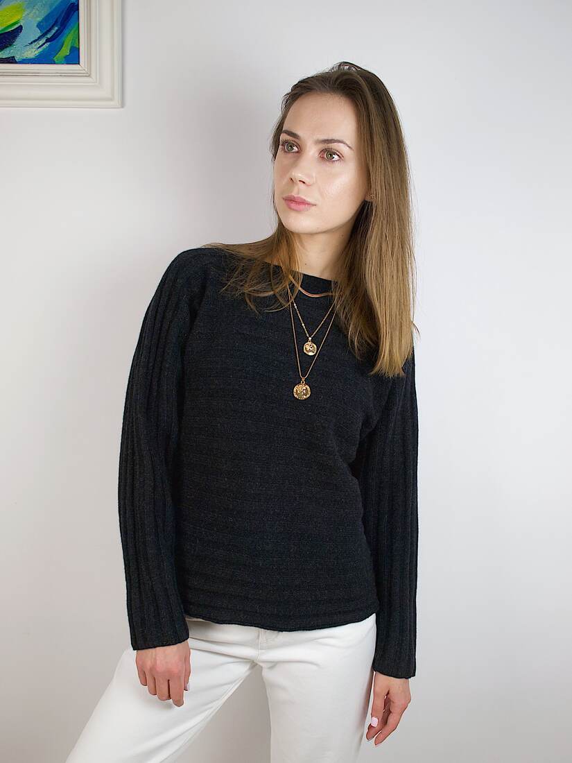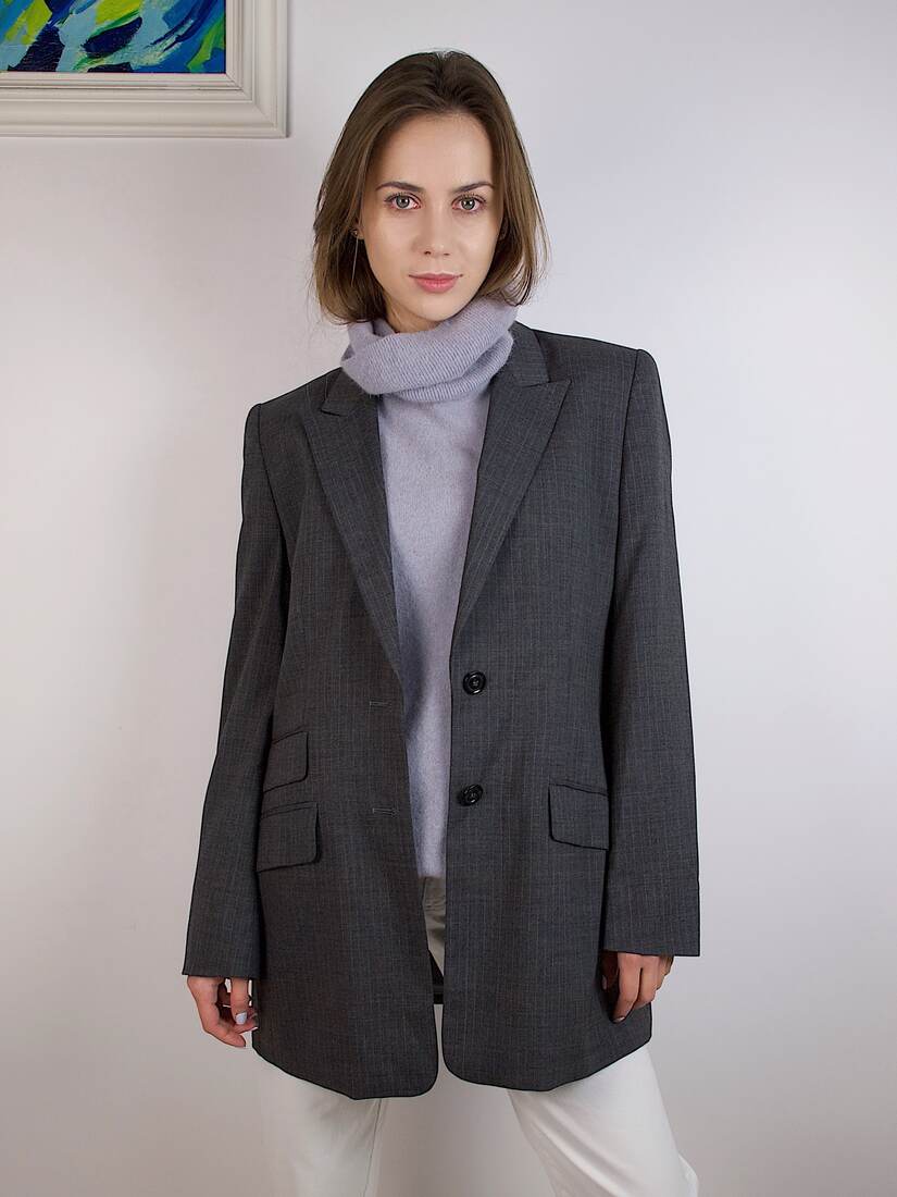 160,00 złGrafitowa marynarka w paski luksusowej marka Laurèl, grupa ESCADA. Skład 98% wełna, 2% elastan, w ramionach delikatnie usztywniona. Rozmiar z metki 36, jest luźna, więc będzie dobra także na M. Idealny stan.