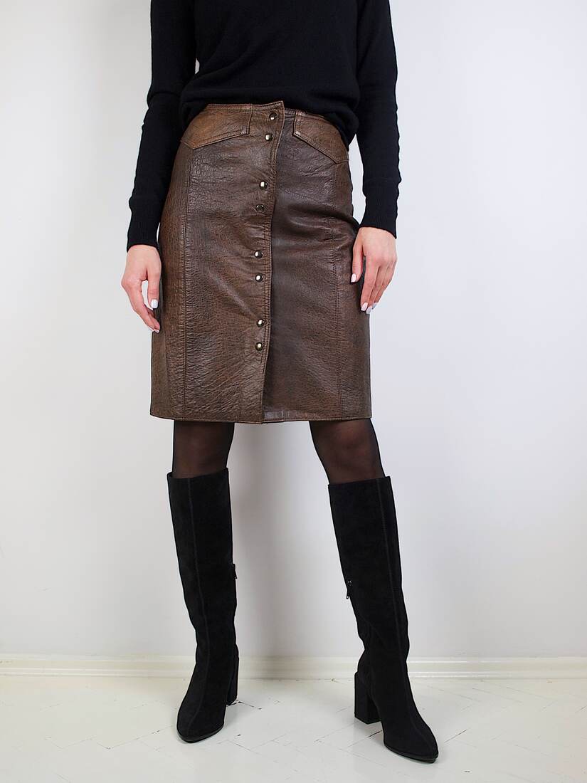 110,00 zł70,00 złSpódniczka vintage wykonana ze skóry naturalnej. Rozpinana na napy, z podszewką. Będzie pasować na XS, nie rozciąga się, więc proszę sprawdzić wymiary. Bez wad.