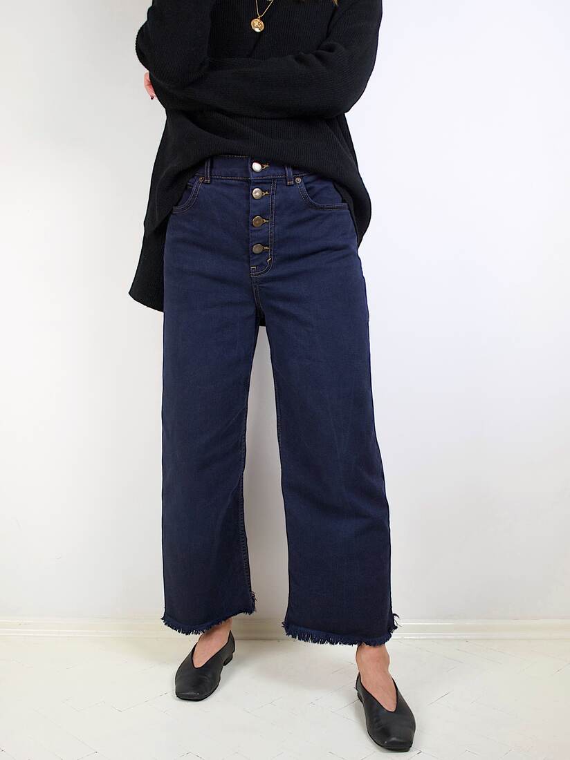 130,00 złJeansy wide leg marki & Other Stories. Wysoki stan, zapinane na guziki, nogawki wykończone na surowo. Rozmiar z metki 27, będą pasować na S – mniejsze M. Bez wad.