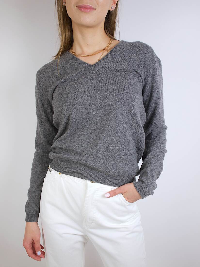 70,00 złSweter skandynawskiej marki Filippa K, wykonany z mieszanki wełny i bawełny. Rozmiar z metki S, jest dość luźny, więc będzie pasować także na M-L. Przy ściągaczu na jednym rękawie ma plamkę, poza tym bez wad.