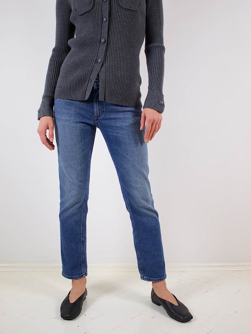 Jeansy luksusowej skandynawskiej marki Totême, cena katalogowa ponad 1000 złotych. Prosty krój, średni stan, rozmiar z metki 26. Polecam na XS-S, modelka nosi rozmiar XS-S i ma 165 cm wzrostu. Bez wad.