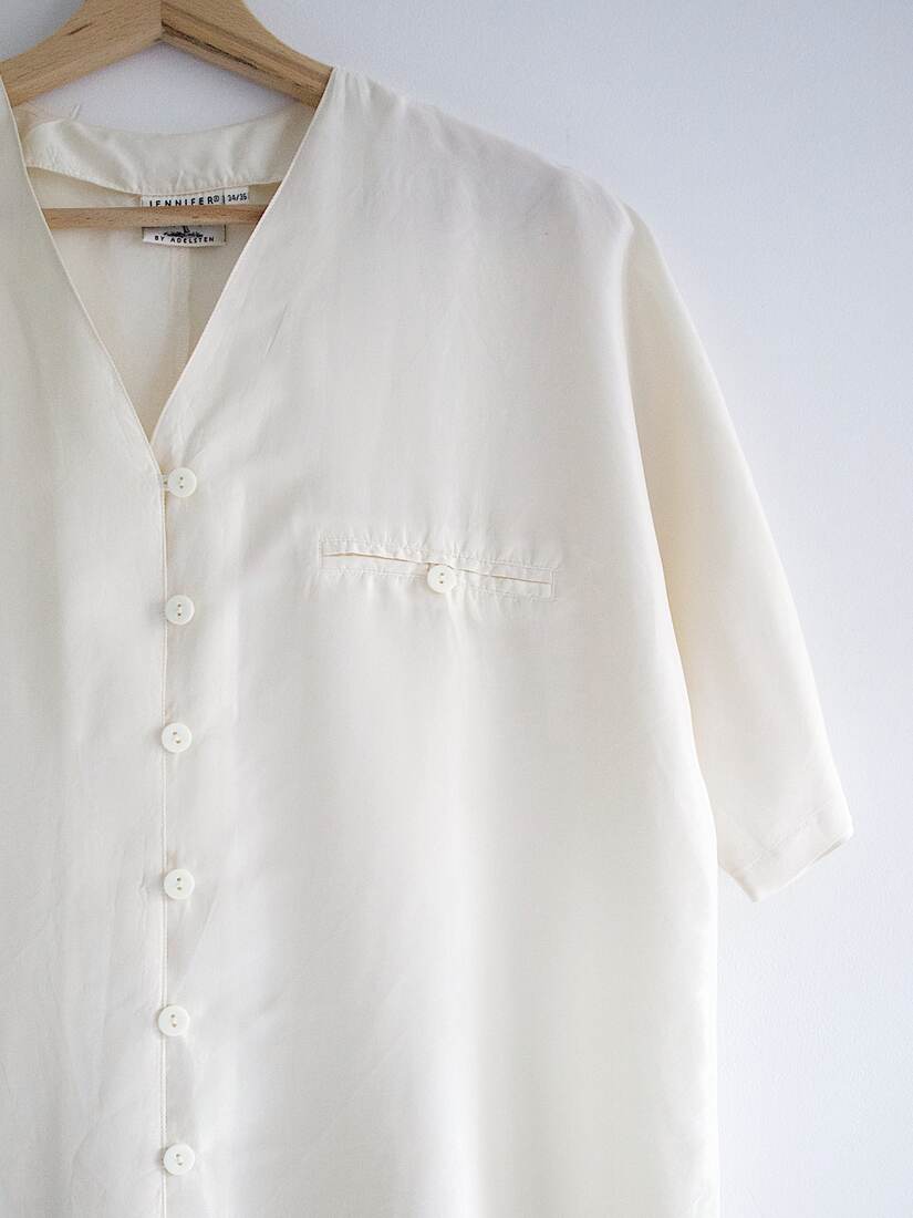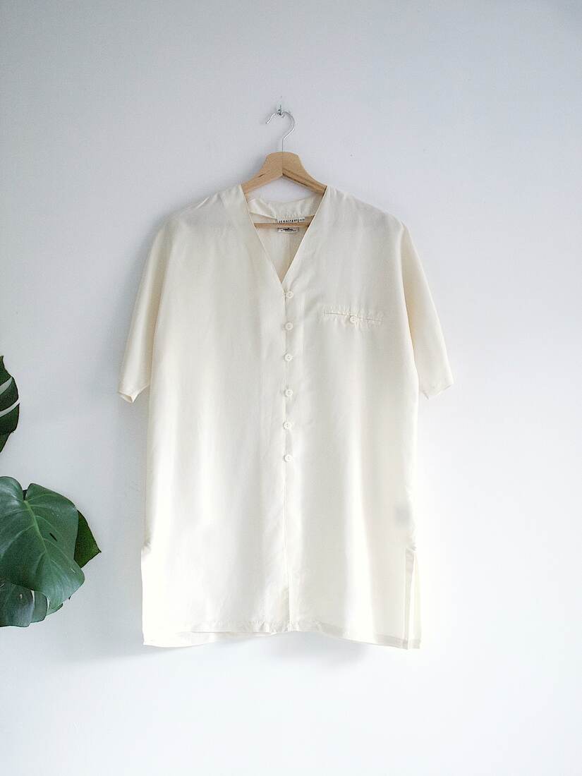 Koszula vintage wykonana z jedwabiu. Rozmiar z metki 34/36, jednak jest dość obszerna, więc będzie pasować także na M i L. Bez wad.