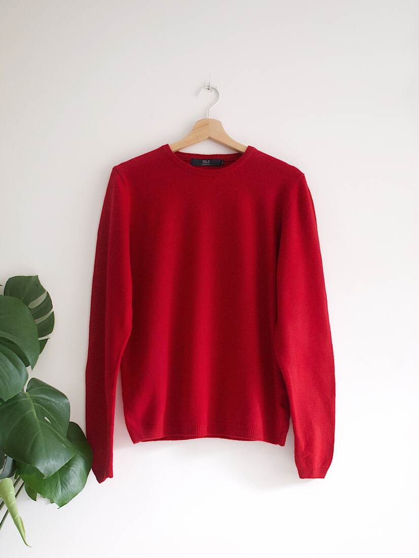 Sweter basic w 100% wykonany z żywej wełny, prawdopodobnie model męski. Rozmiar z metki S, idealny stan.