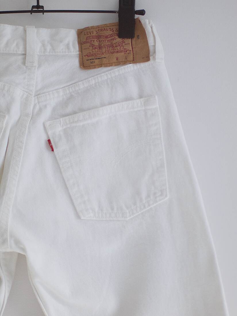 Beżowe Levis’y 501. Rozmiar z metki W26 L32, jest to rozmiar vintage, więc proszę sugerować się wymiarami. Bez wad.