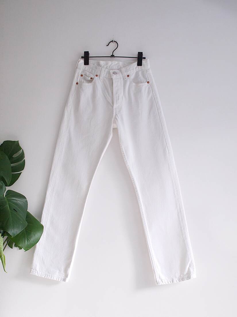 Klasyczny model Levi’s 501, w 100% wykonane z bawełny. Rozmiar z metki W28 L30, jest to model vintage, więc polecam sprawdzić wymiary (będą pasować na XS). Nie rozciągają się. Idealny stan.