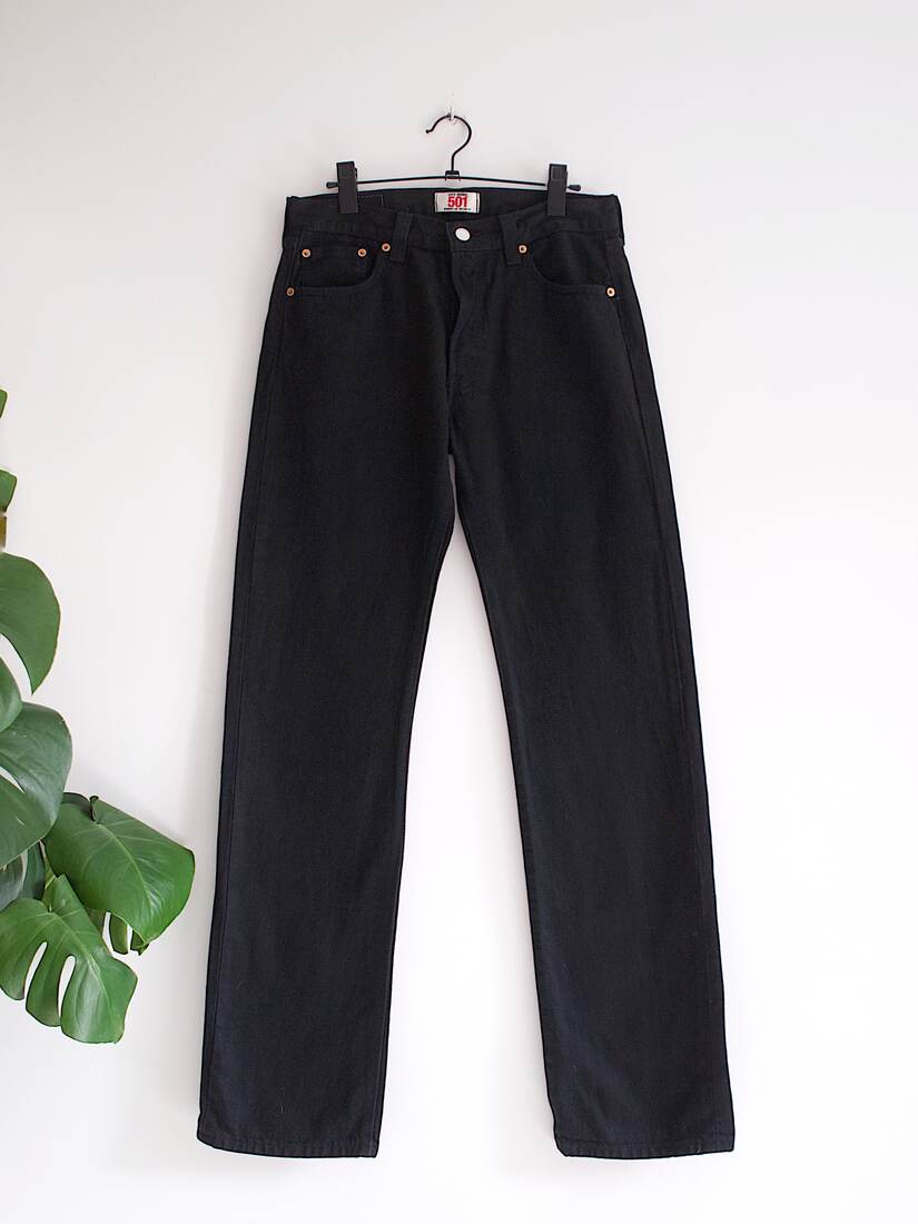 Klasyczne jeansy Levi’s 501, wykonane z grubego denimu. Rozmiar z metki W30, L32, jest to rozmiarówka vintage, więc proszę sugerować się wymiarami (na oko pasują na M). Etykieta jest delikatnie obcięta (ostatnie zdjęcie), poza tym brak wad.