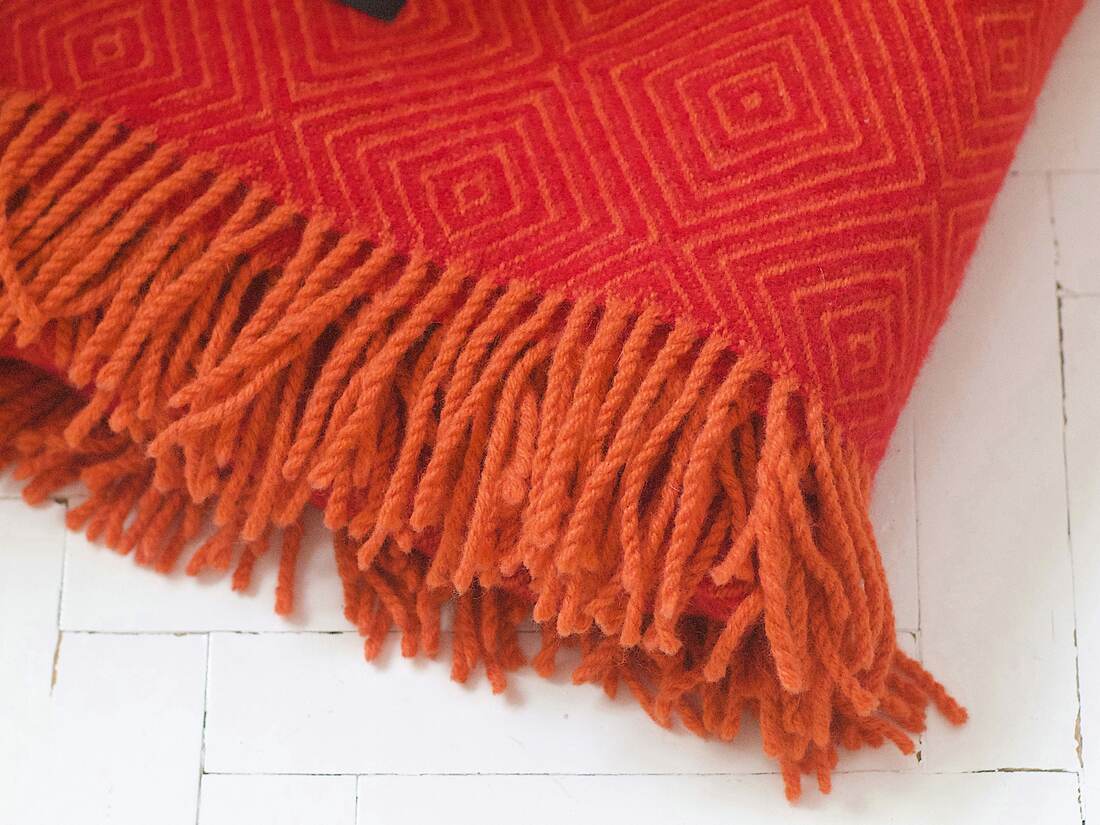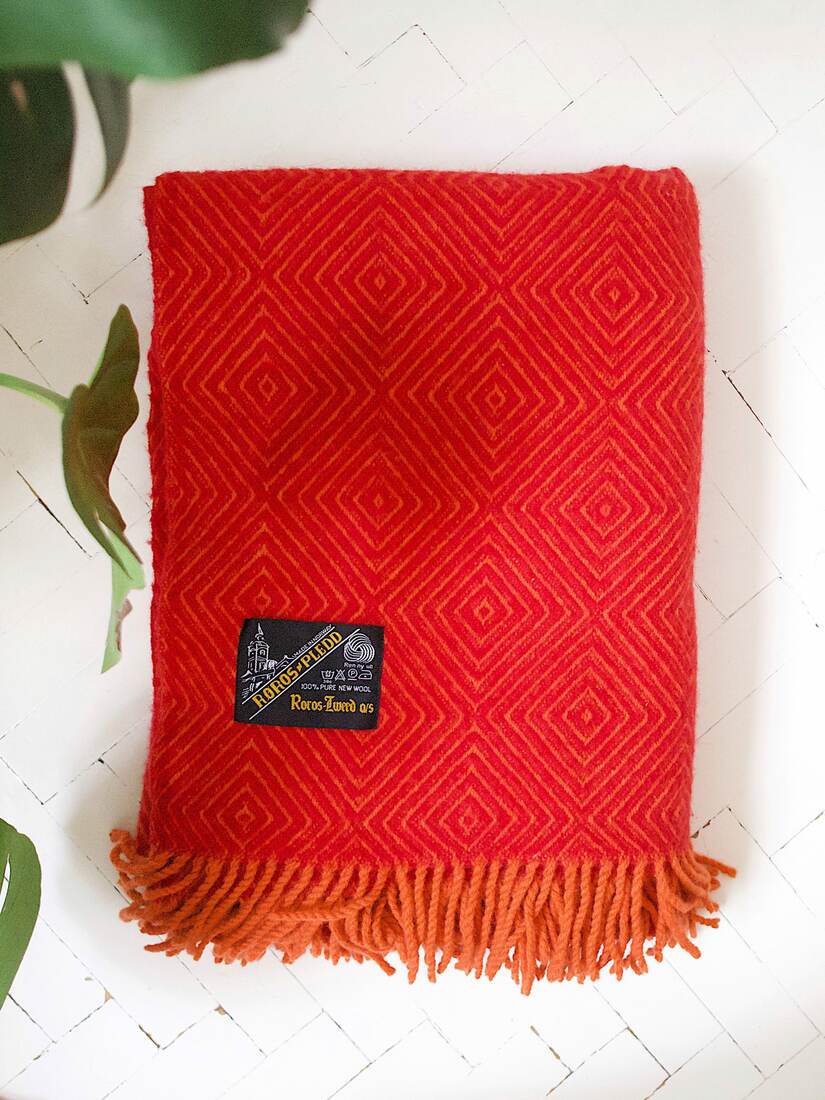 Wełniany koc norweskiej marki Roros Tweed. Idealny stan, po czyszczeniu. Wymiary bez frędzli 194×146 cm.
