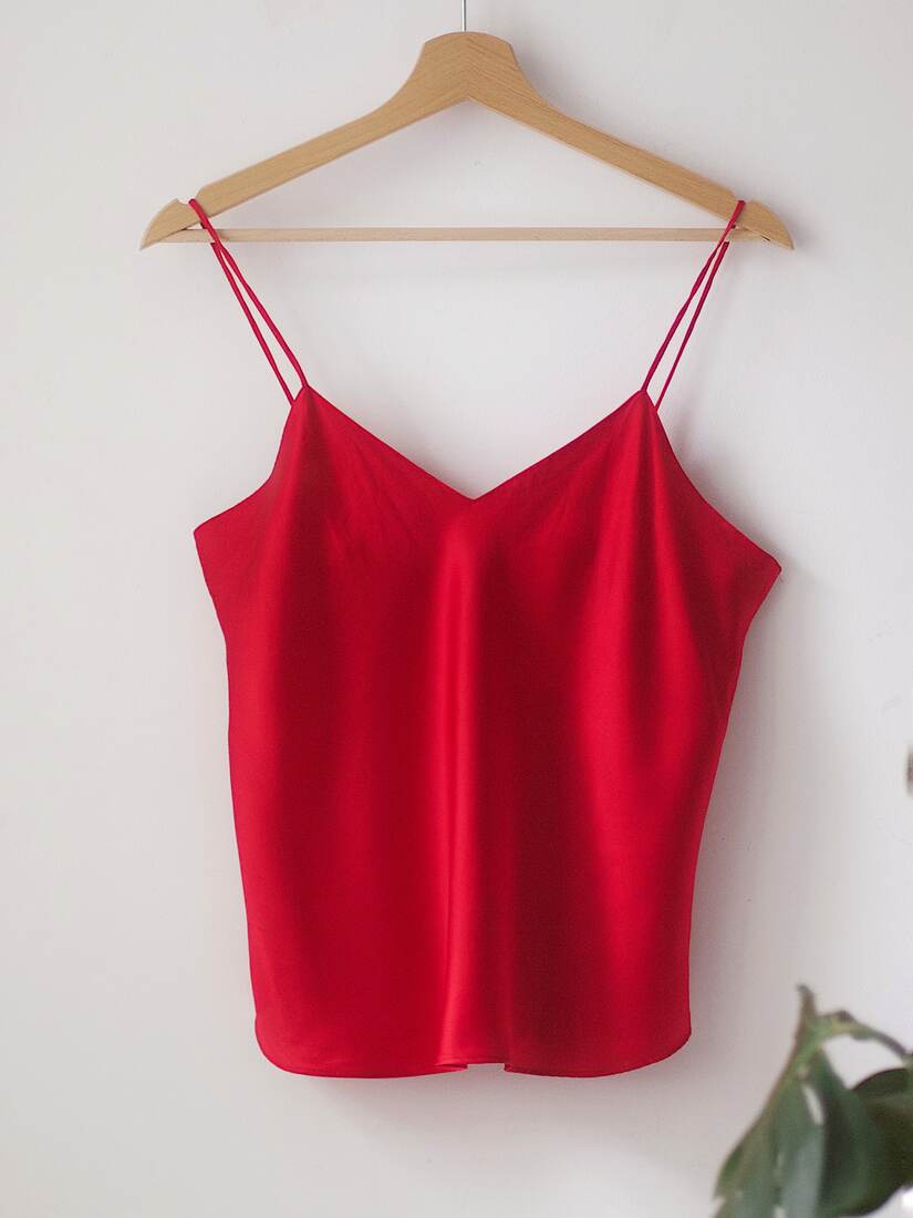 Top na ramiączkach wykonany z gładkiej jedwabnej satyny. Będzie pasować na XS-S, bardzo dobry stan.