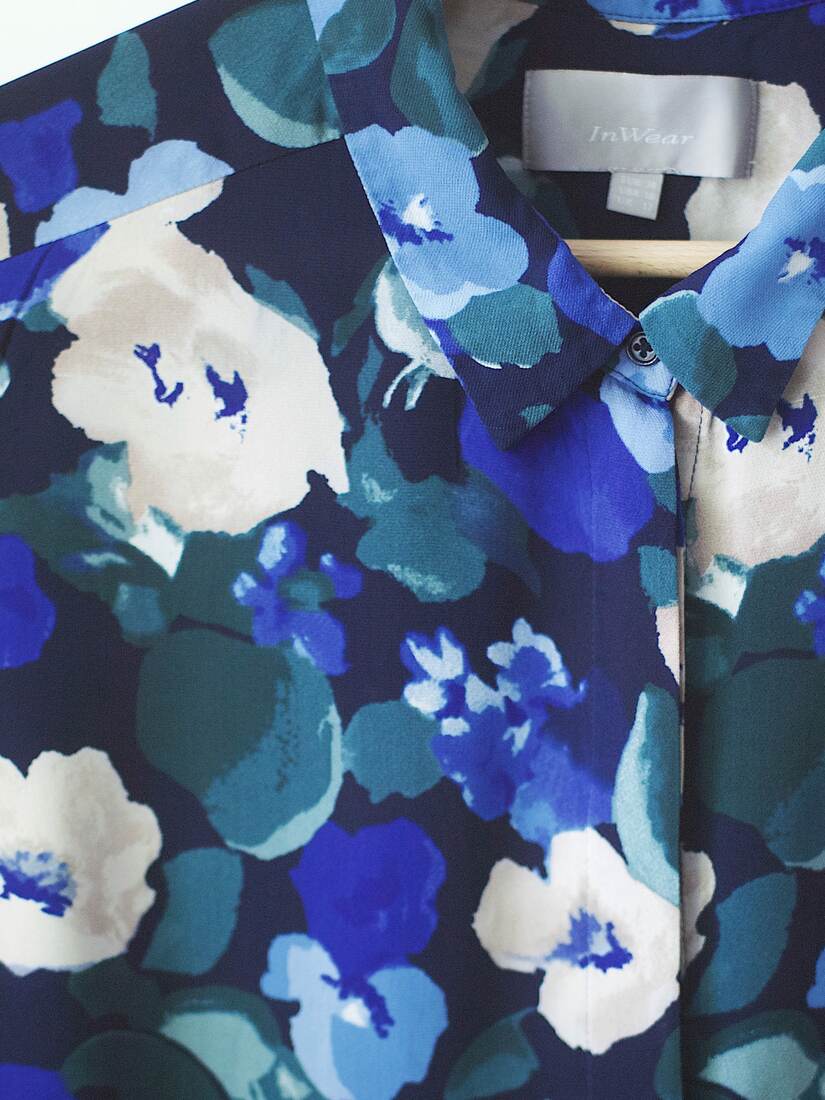 Bluzka w kwiaty skandynawskiej marki In Wear. Zapinana na ukryte guziki, Rozmiar z metki 38, skład 100% wiskoza, idealny stan.