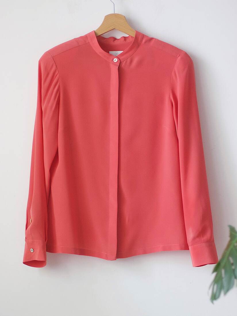 Jedwabna bluzka vintage. Na jednym rękawie ma delikatne odbarwienie, poza tym brak wad. Brak metki z rozmiarem, będzie pasować na XS-S-M.