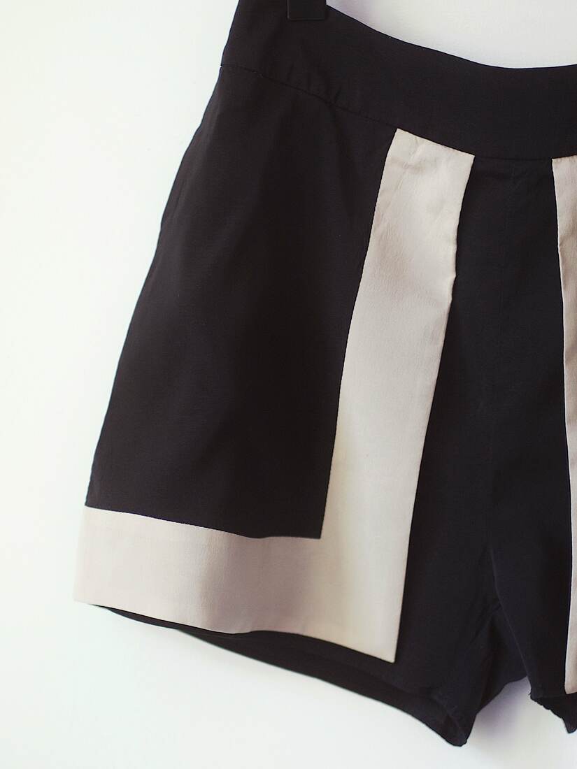 Krótkie jedwabne spodenki. Zapinane na zamek z tyłu. Polecam na XS-S, bez wad.
