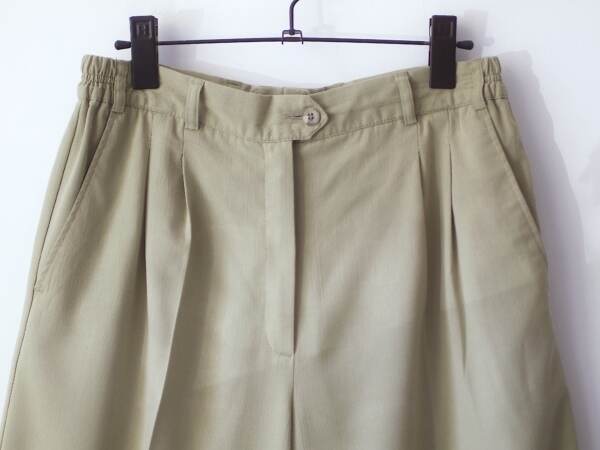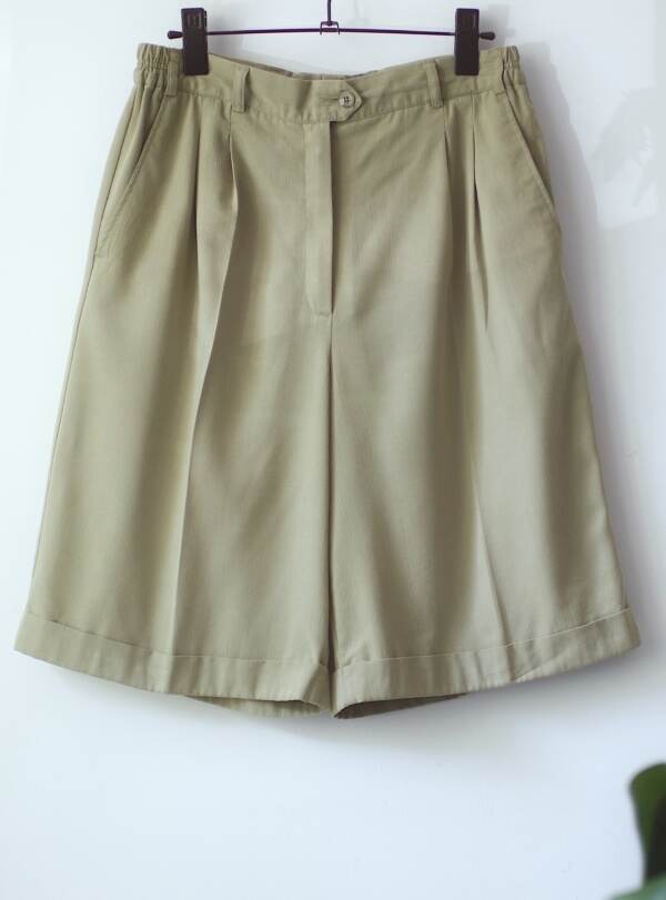 60,00 złBermudy vintage w pistacjowym kolorze. Wysoki stan, szerokie nogawki, kieszenie, bez podszewki. Metka ze składem wycięta, prawdopodobnie wiskoza. Bardzo dobry stan, będą pasować na S-M
