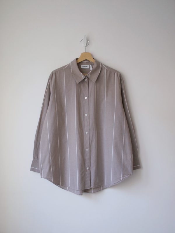Szaro-beżowa koszula skandynawskiej marki Weekday. Oversizowy fason.