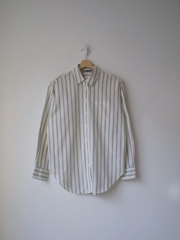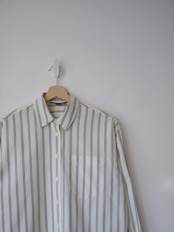 Kremowa koszula w paski marki Marks & Spencer. Wykonana w 100% z bawełny, o luźnym fasonie.