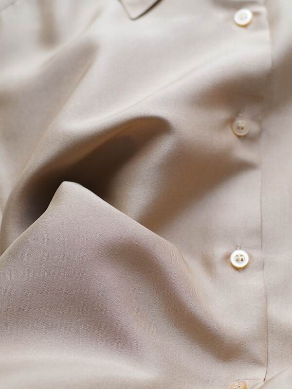 110,00 złBeżowa jedwabna koszula vintage. Grubszy, porządny materiał o złocistym połysku. Koszula nie była noszona (posiadała metki papierowe, zostały odcięte przed czyszczeniem). W jednym miejscu ma małe pogrubienie materiału (ostatnie zdjęcie), nie jest to skaza, tylko specyfika materiału. Rozmiar z metki 40, wymiary poniżej.