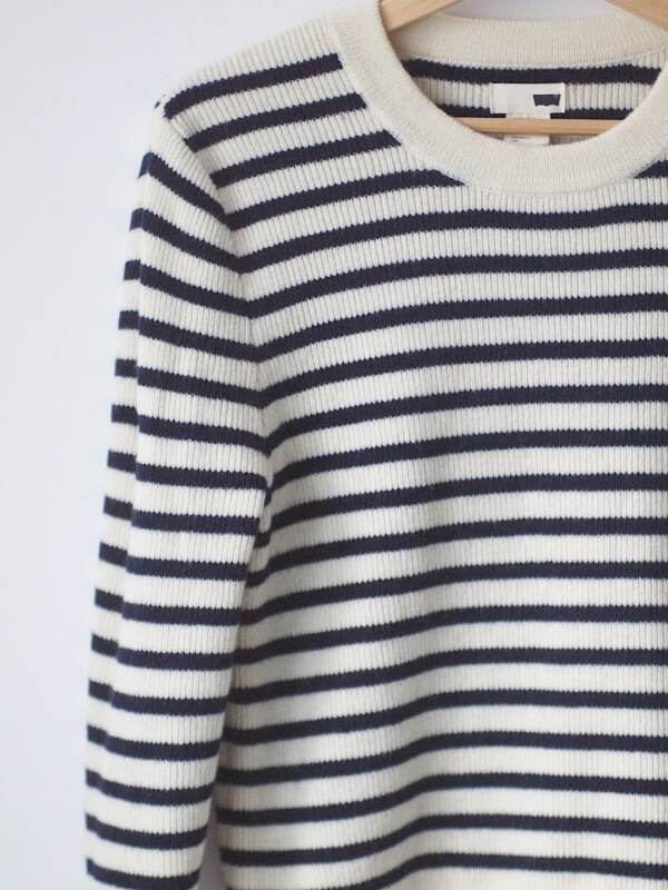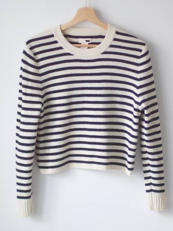 Wełniany sweter marki Levis, 100% wełna. Rozmiar z metki L, w rzeczywistości jest to raczej S/M (modelka ma 165 cm wzrostu i nosi r.XS). Krótszy fason, idealny do spodni z wysokim stanem. Stan idealny.