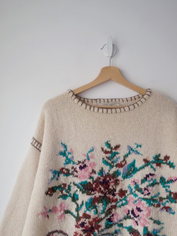 350,00 złUnikatowy sweter kultowej marki Laura Ashley. Model vintage z lat 80., na zagranicznych serwisach sprzedawany za ponad 700 zł. Ręcznie robiony z wełny, z niewielkim dodatkiem bawełny. Luźny fason.