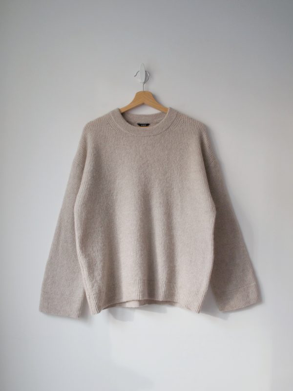 Sweter o bardzo grubym splocie. Ekskluzywna skandynawska marka Gestuz, cena katalogowa 1.499,00 DKK, czyli ponad 850 zł. Wykonany z puszystej tkaniny z dodatkiem wełny i alpaki, bufiaste rękawy.