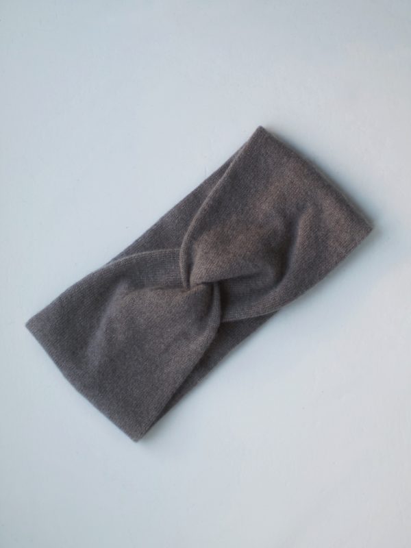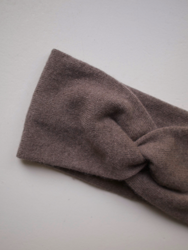 Ciepła opaska na głowę w kolorze taupe. W 100% szyta z kaszmiru z odzysku.