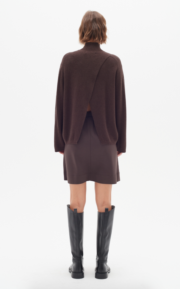 Sweter z otwartym tyłem w czekoladowym kolorze. Skandynawska marka InWear, cena katalogowa €119.95, czyli ponad 500 zł.