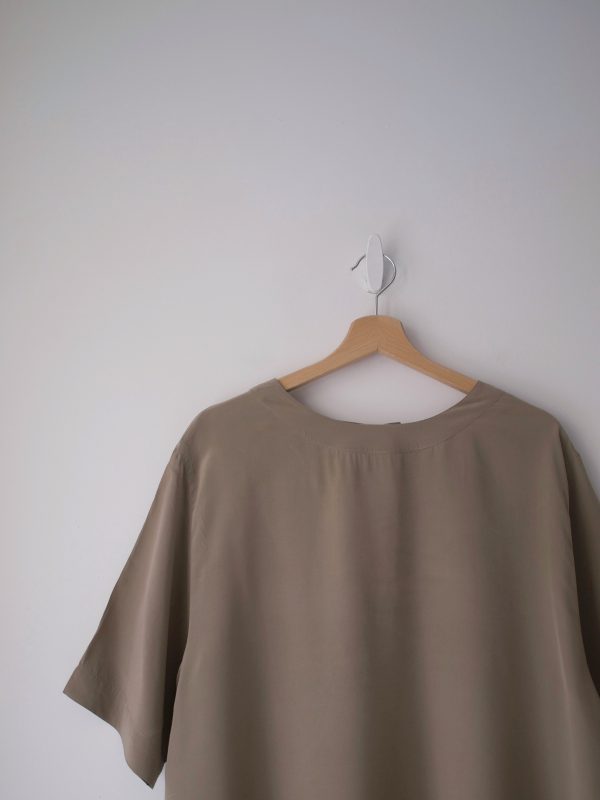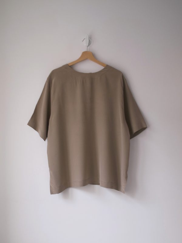 Jedwabna bluzka vintage, w pięknym kolorze taupe. Bardzo luźny fason.