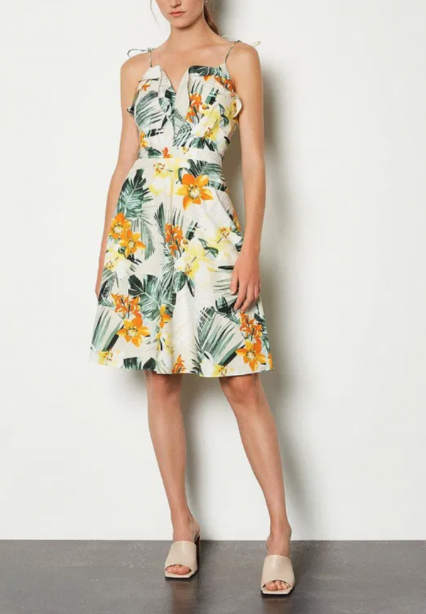 220,00 zł154,00 złBawełniana sukienka w tropikalny wzór od ekskluzywnej marki Karen Millen. Model z podszewką, zapewniający komfort nawet w upalne dni. Cena katalogowa: 223 euro.