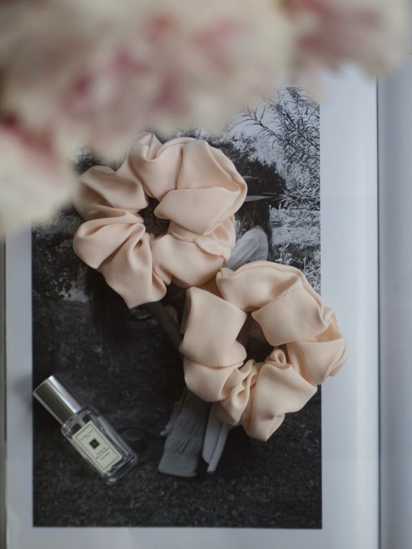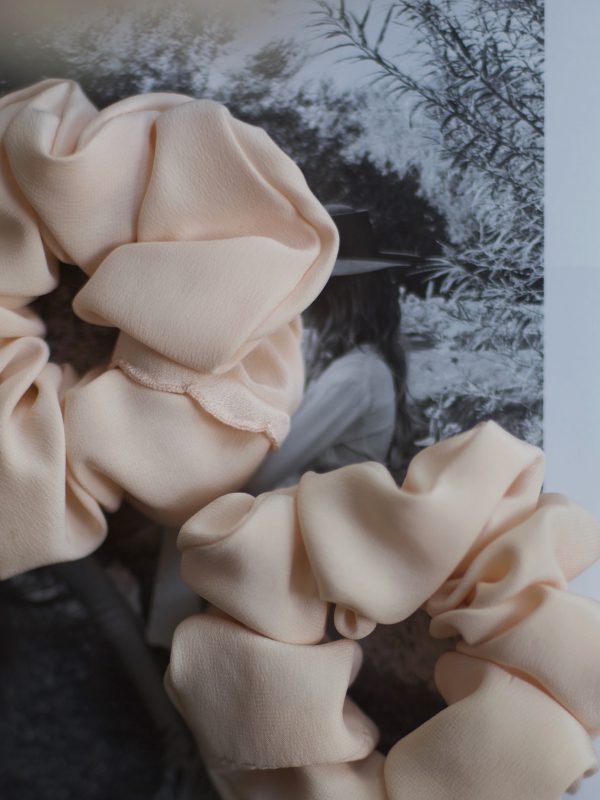 Jedwabna gumka do włosów szyta z materiału z odzysku. 100% jedwab, średnica: około 10-12 cm.