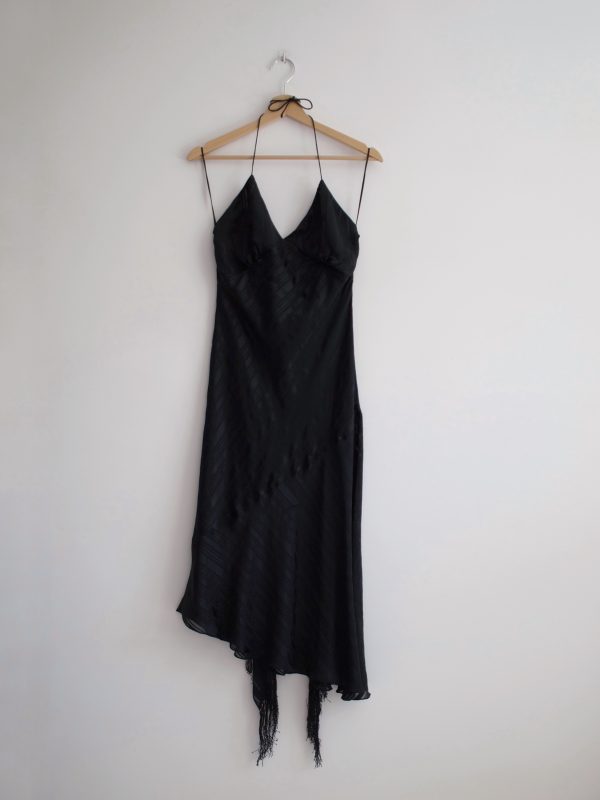 175,00 zł105,00 złJedwabna sukienka wieczorowa. Dekolt wykończony ramiączkami, które są zawiązywane na szui, tył z długą szarfą, która może być wiązana na różne sposoby. Z podszewką.