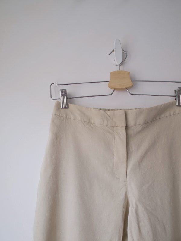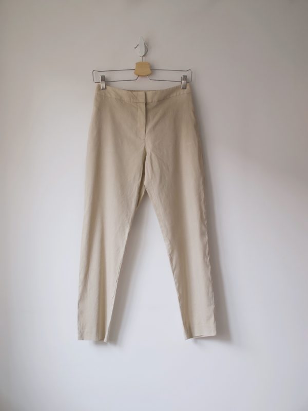 240,00 zł96,00 złSpodnie cygaretki luksusowej marki Theory, wykonane z materiału z dużym dodatkiem lnu. Zapinane na zamek, z kieszeniami, materiał o delikatnie marszczonej strukturze. Cena katalogowa 245 euro, czyli ponad 1000 zł. Wykonane dla rynku azjatyckiego, więc rozmiar wypada na mniejszy.