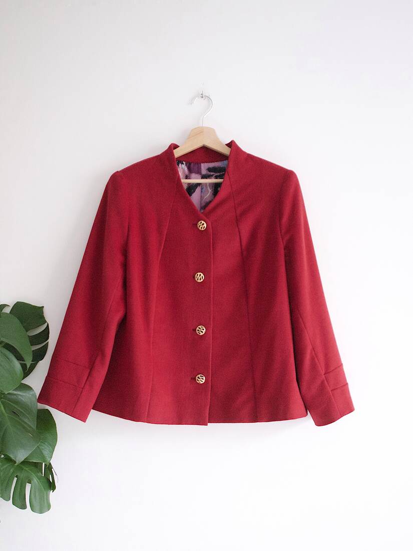 140,00 zł70,00 złMarynarka/lekka kurtka vintage szyta na zamówienie. Poszerzana ku dołowi, ozdobiona metalowymi guzikami. Brak metki z rozmiarem, będzie pasować na XS-S-M, zależnie od preferowanego dopasowania. Bez wad, po czyszczeniu.